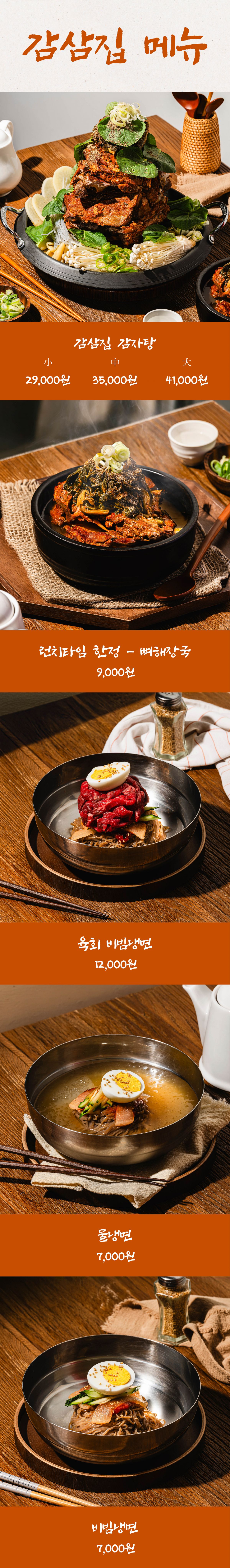 감삼집은 최고급 ++등급 한우와 감자탕, 삼겹살을 제공합니다.
